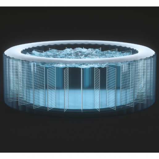 Беспроводная панель управления с зарядкой (до 48 ч автономной работы) позволяет активировать до 170 пузырьковых форсунок для массажа, а также управлять функциями фильтрации, температуры и освещения. Управление также возможно через приложение Intex Link™ Spa Management — прямо со смартфона.