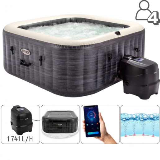 Надувной СПА-бассейн Intex PureSpa Greystone Deluxe 28450 (4 места, 160/211×71 см, 795 л, аэромассаж, управление через приложение)